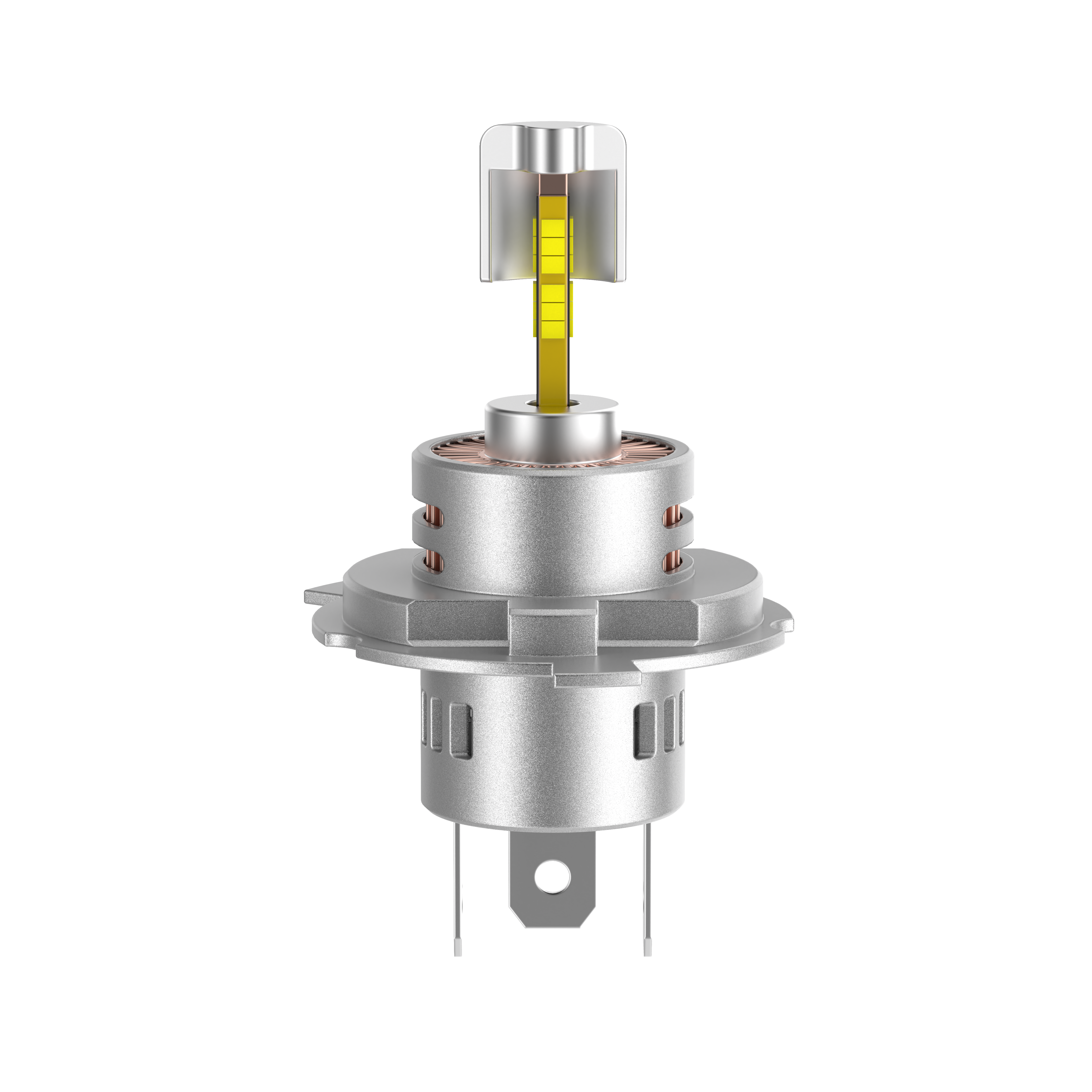 Kit lampadine a LED H4/H19 con chip a 360° e mini ventola di raffreddamento integrata.
